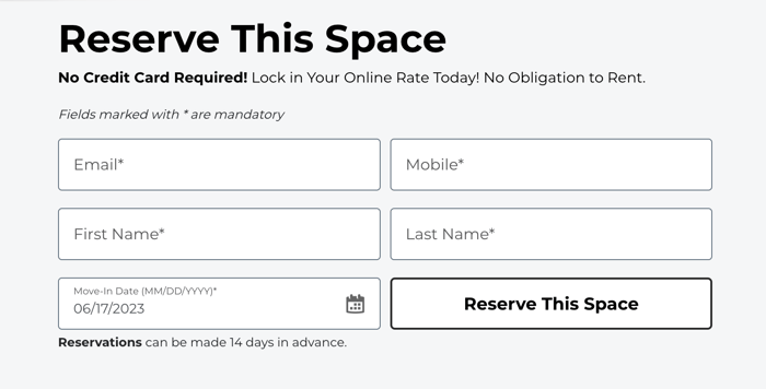 Reserving a space is simple and allows you to hold a spot ahead of time—no credit card is required. It is not the same as renting a unit, and you will still be required to pay later.